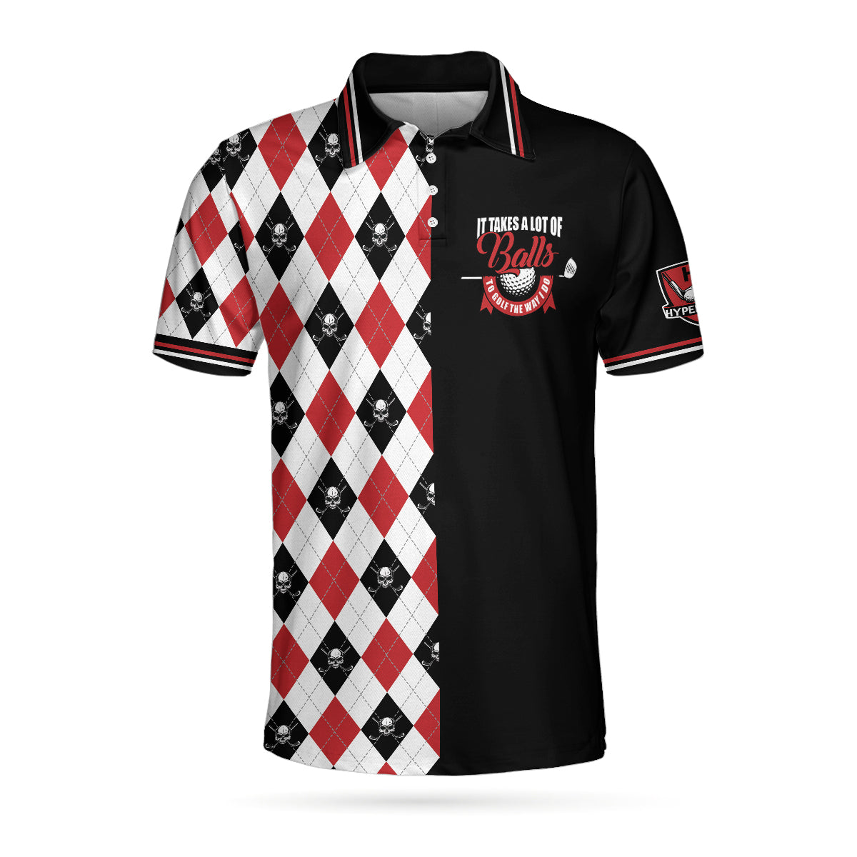 Be the first to review “It Takes A Lot Of Balls Red Black And White Pattern Polo Shirt, Argyle Pattern Skull Golf Shirt For Men”