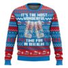 Power up your holiday wardrobe with the It’s Turbo Time Turbo Man Jingle All the Way Ugly Christmas Sweater. Inspired by Jingle All the Way, this bold design captures the chaotic charm of 90s consumerism and superhero fandom. A nostalgic nod to pop culture excess.