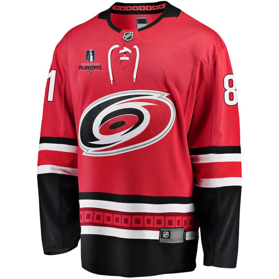 Jamieson Rees 81 Carolina Hurricanes Stanley Cup 2023 Playoffs Patch Home Breakaway Men Hockey Jersey – Red – JS752
