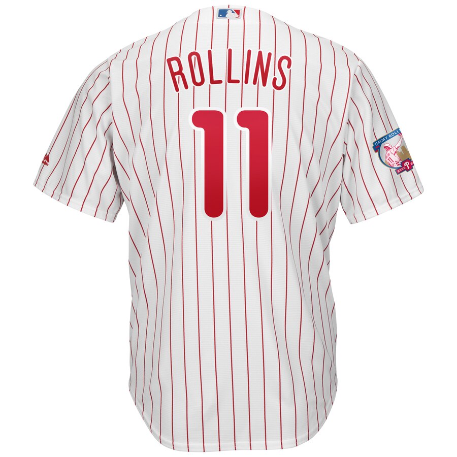 Jimmy Rollins Philadelphia Phillies Majestic Home Retirement Cool Base Player Baseball Jersey – White Red