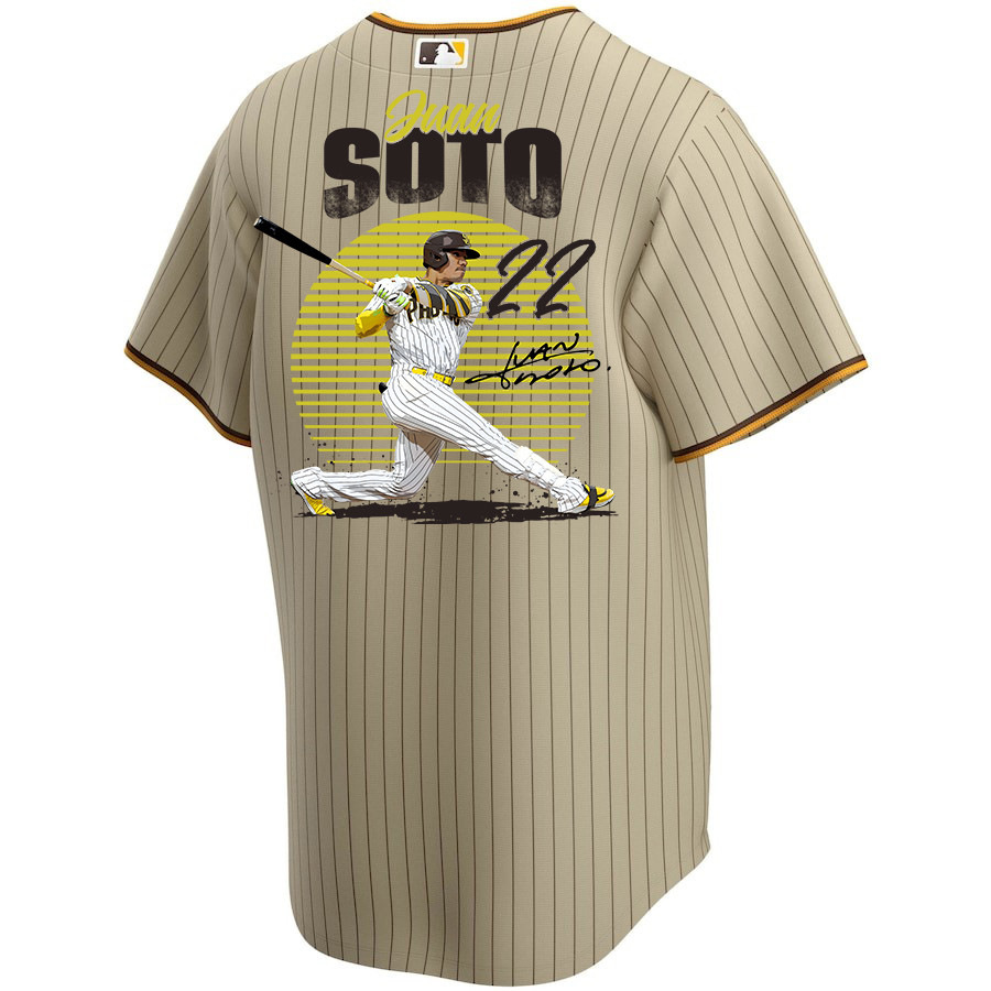 Juan Soto 22 San Diego Padres Signed Hit 2023 Alternate Player Men Baseball Jersey – Tan