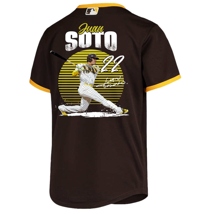 Juan Soto 22 San Diego Padres Signed Hit 2023 Road Player YOUTH Baseball Jersey – Brown