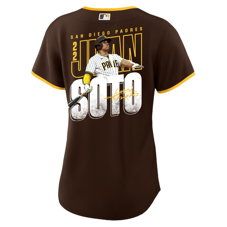 Juan Soto 22 San Diego Padres Signed Posture 2023 Road Player Women Baseball Jersey – Brown