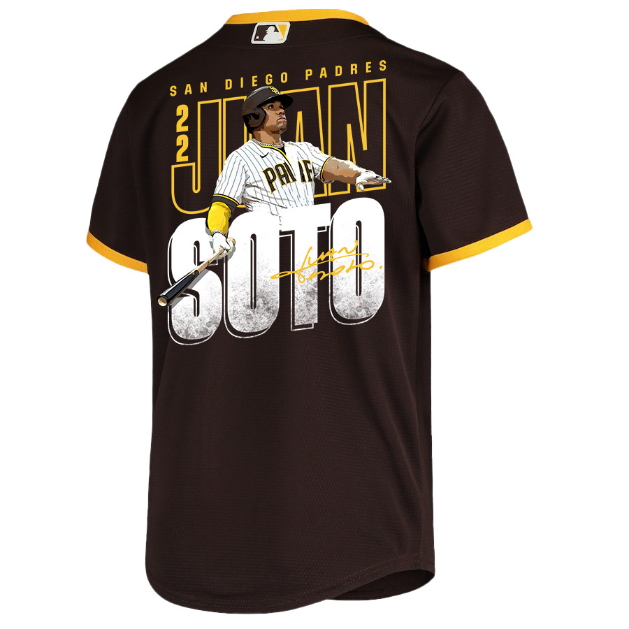 Juan Soto 22 San Diego Padres Signed Posture 2023 Road Player YOUTH Baseball Jersey – Brown