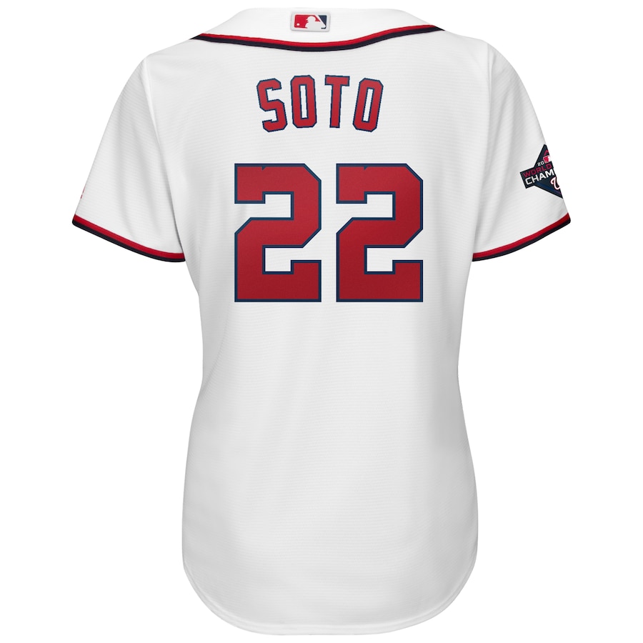 Juan Soto Washington Nationals Majestic Women’s 2019 World Series Champions Home Cool Base Patch Player Baseball Jersey – White