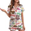 - Short-sleeve, button-front design with a turn-down collar, chest pocket, and contrast piping—classic and stylish for sleepwear, loungewear, or hosting guests.
