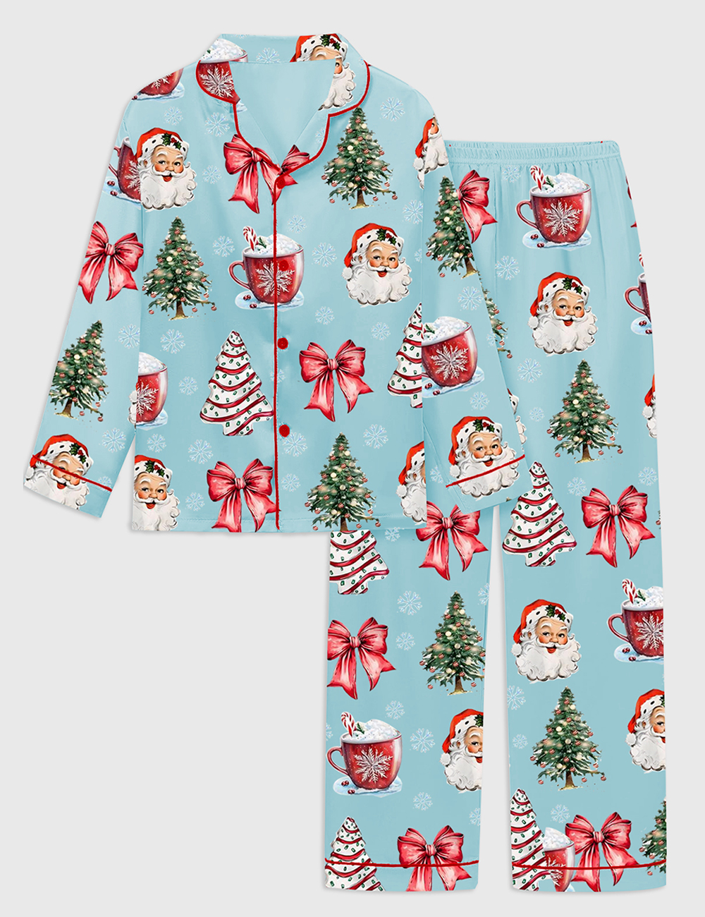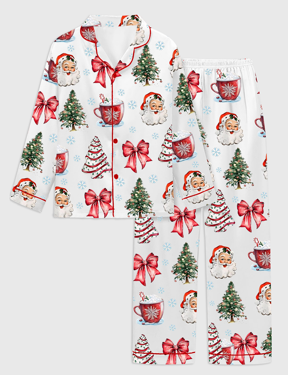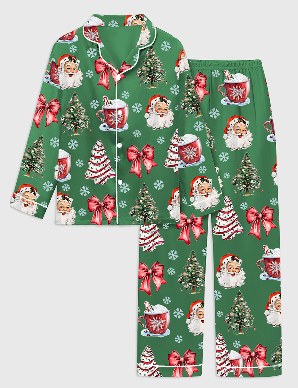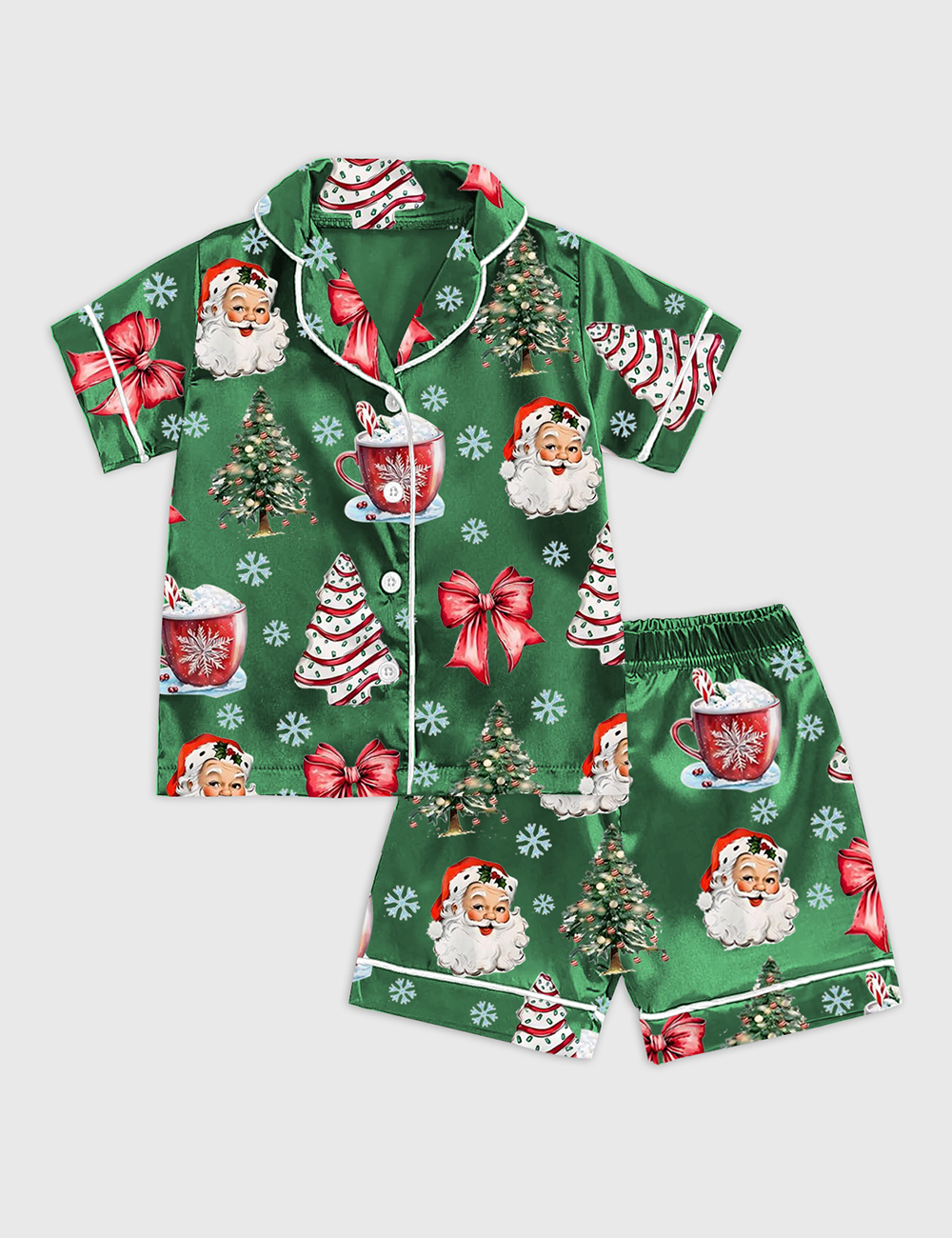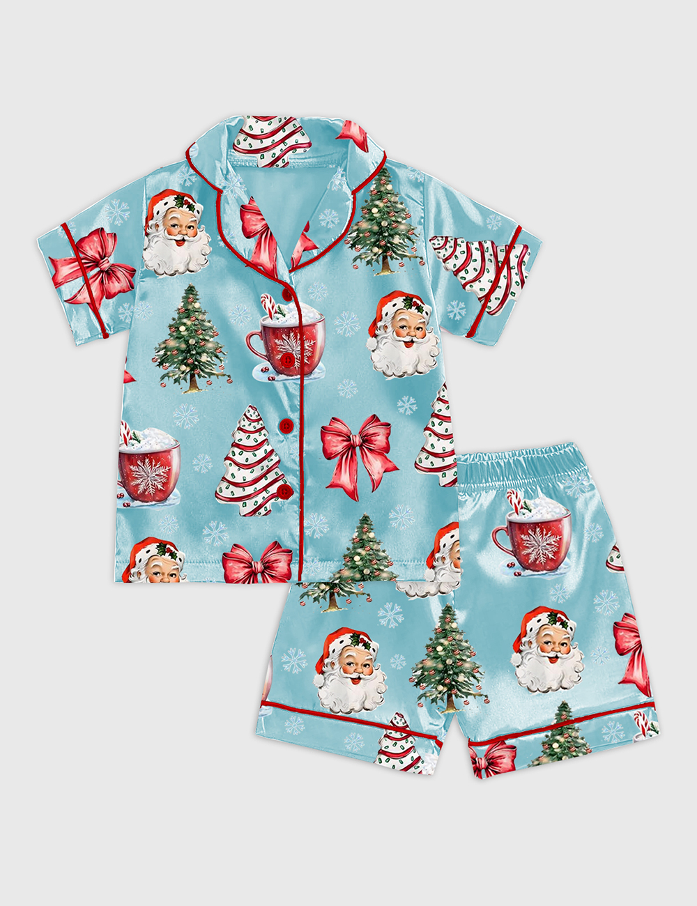 Kid’s Coquette Christmas Santa Satin Family Pajama Set
