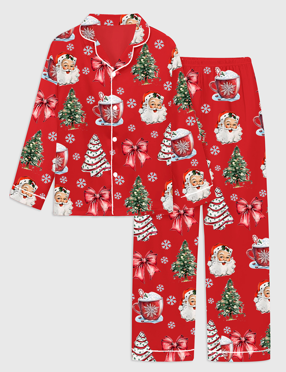 Kid’s Coquette Christmas Santa Satin Family Pajamas Set