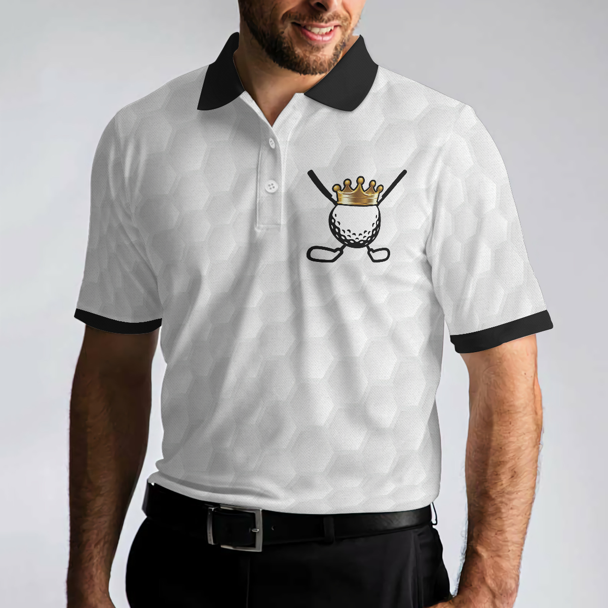 King Of Golf Black And White Polo Shirt For Men, Golf Texture Golfer On Throne Polo Shirt