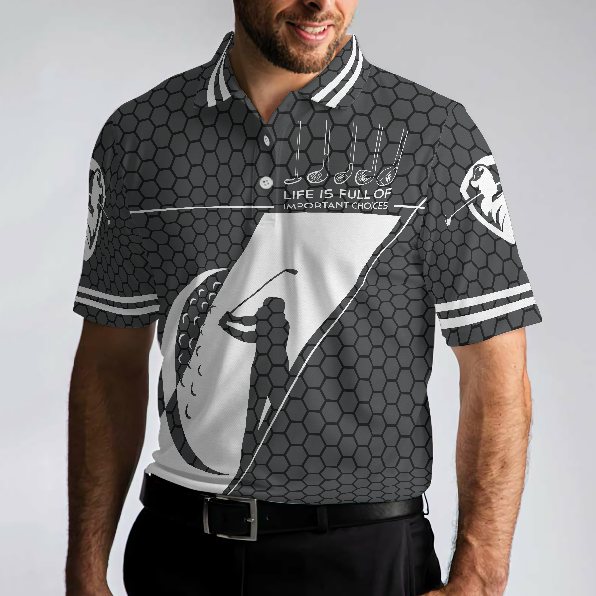 Life Is Full Of Important Choices Golf Polo Shirt, Black Golfing Pattern Polo Shirt, Best Golf Shirt For Men