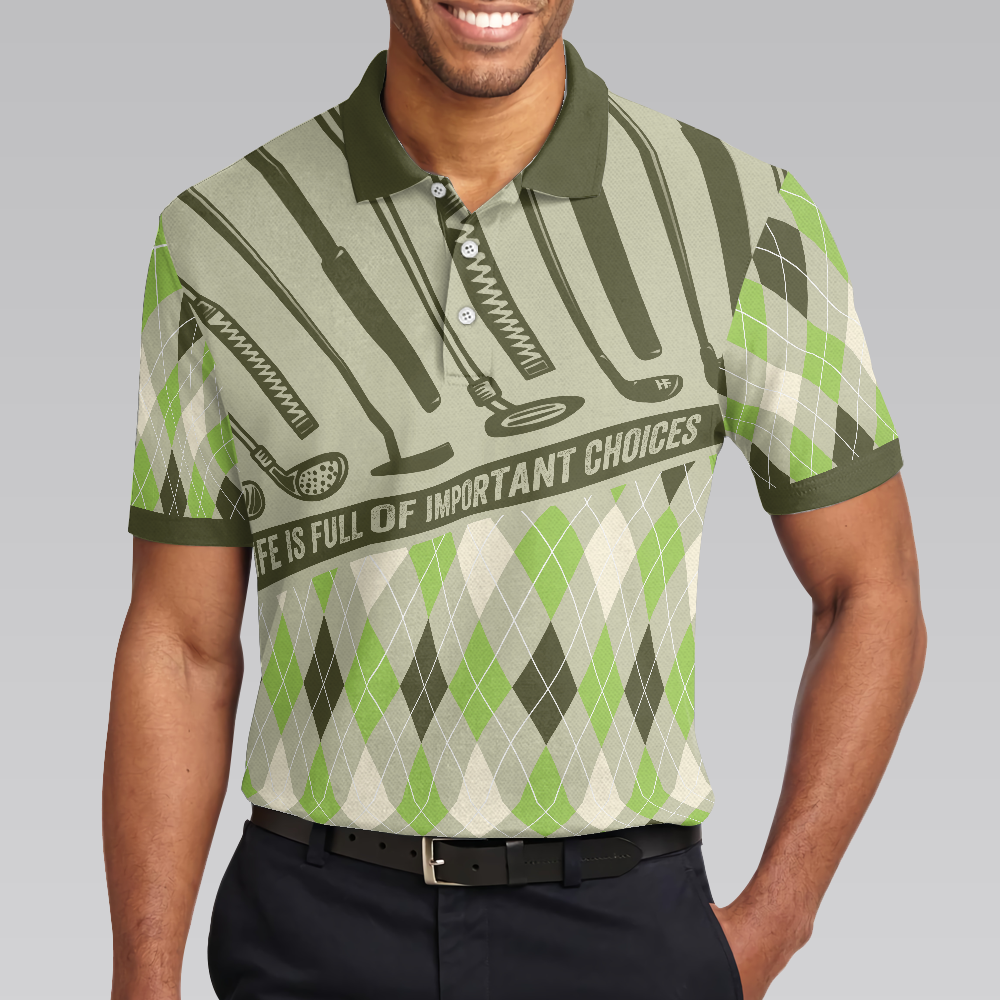 Be the first to review “Life Is Full Of Important Choices Men Polo Shirt, Argyle Pattern Golf Shirt For Men”