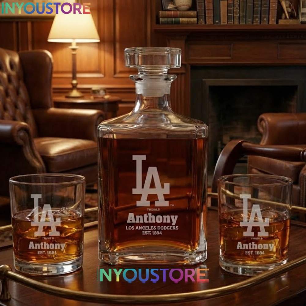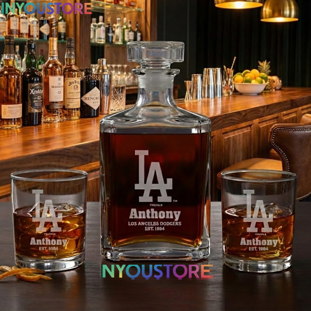 Personalized Los Angeles Dodgers Whiskey Decanter Set – The Ultimate Custom Gift for the True Blue Fan