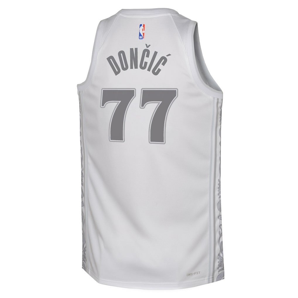 Luka Dončić 77 Dallas Mavericks 2024/25 Swingman Player YOUTH Basketball Jersey – City Edition – White – JS605