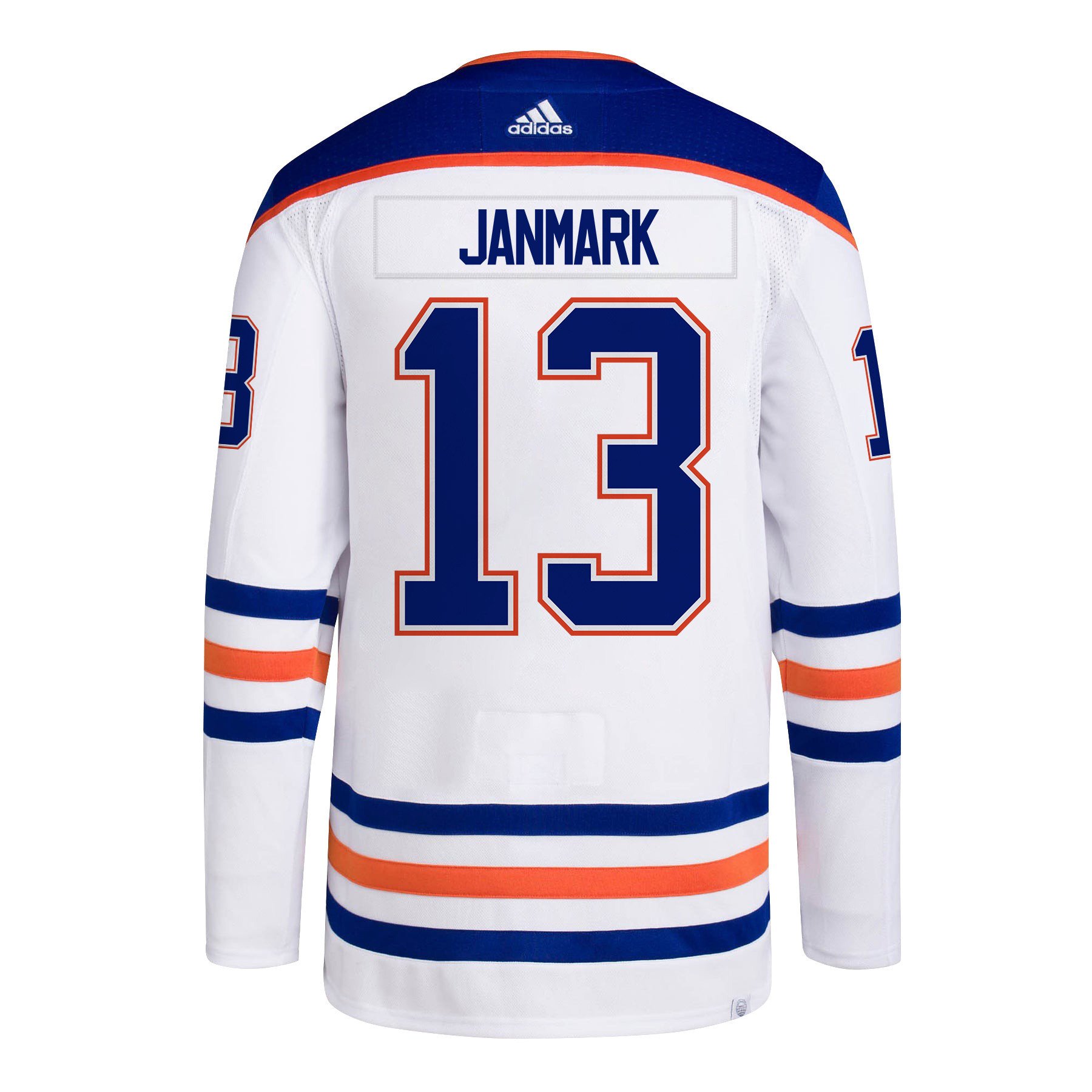Mattias Janmark 13 Edmonton Oilers 2024 NHL Playoffs Patch Away Hockey Jersey – Men, White – JS579