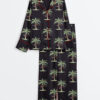 Men’s Tropical Christmas Aloha Holiday Beach Santa In July Hawaiian Print Long Sleeve Satin Pajama Set