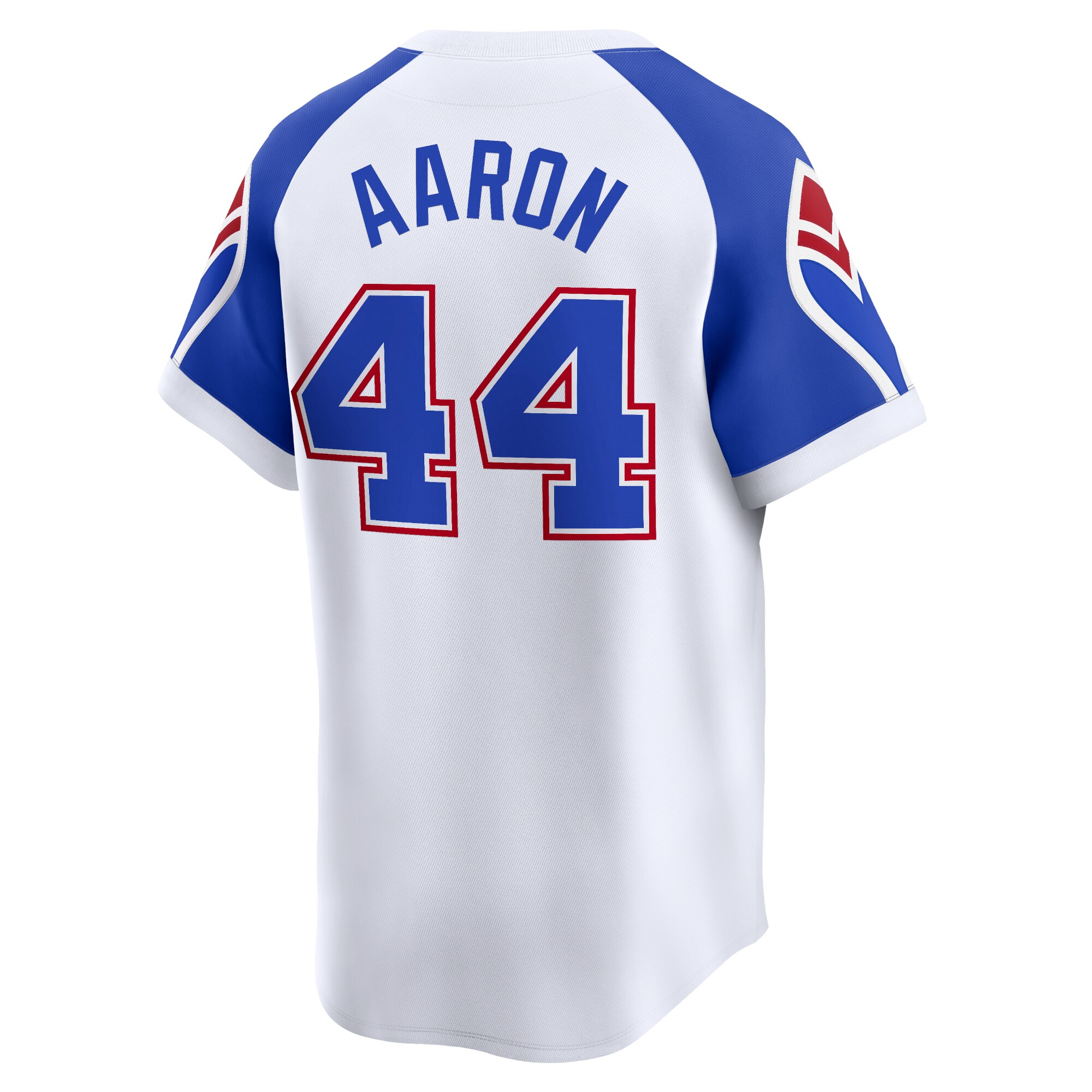 Men’s Atlanta Braves Hank Aaron White Throwback Cooperstown Limited Baseball Jersey – JS881