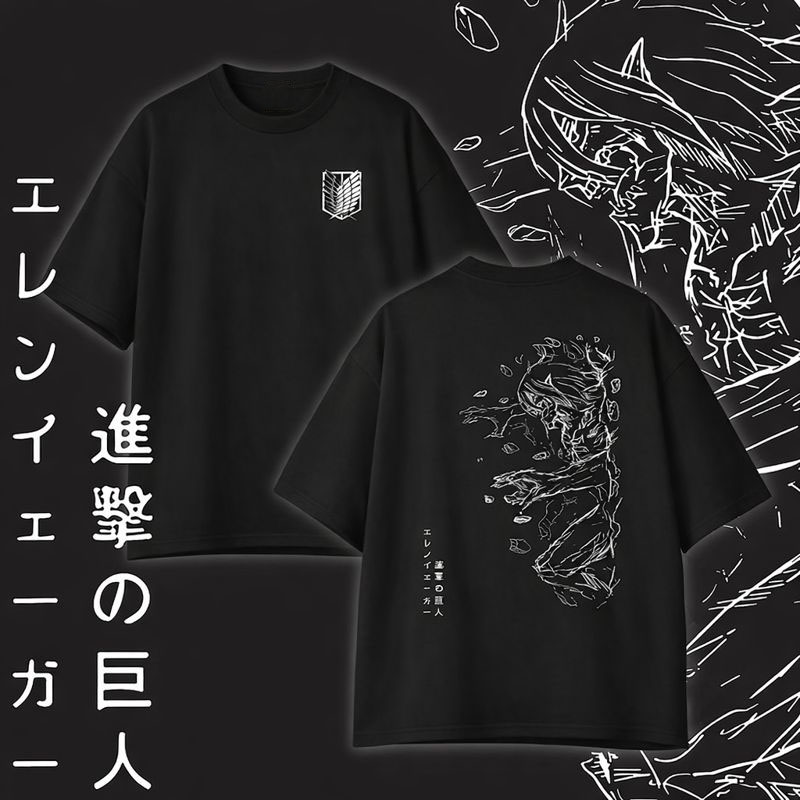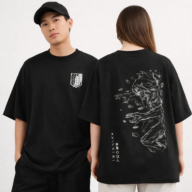 Embrace the darker side of Paradis with our Eren Yeager Attack on Titan Oversized T-Shirt. This premium heavyweight tee features a clean, embroidered-style Survey Corps logo on the front and a striking, artistic line-art graphic of Eren on the back. Designed for fans who appreciate minimalist anime streetwear and a modern boxy silhouette, this shirt is a sophisticated tribute to the Final Season’s intensity.