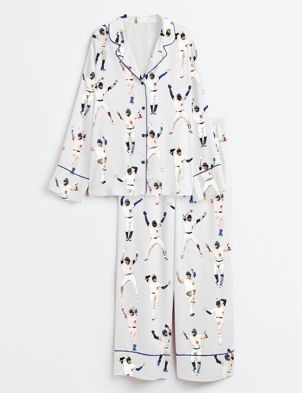 Men’s Baseball League Long Sleeve Satin Pajamas Set