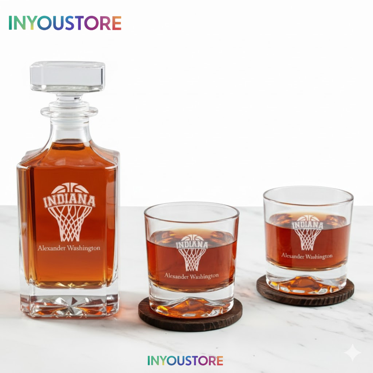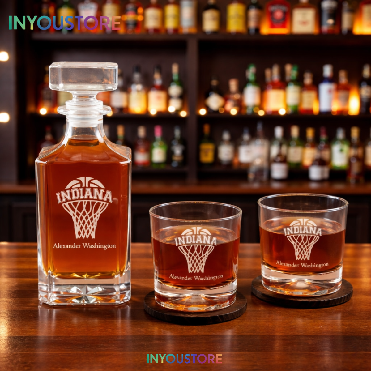 Elevate your home bar with this Men’s Indiana Pacers NBA Custom Engraved Whiskey Decanter Gift Set. Premium glassware with laser-etched logos.