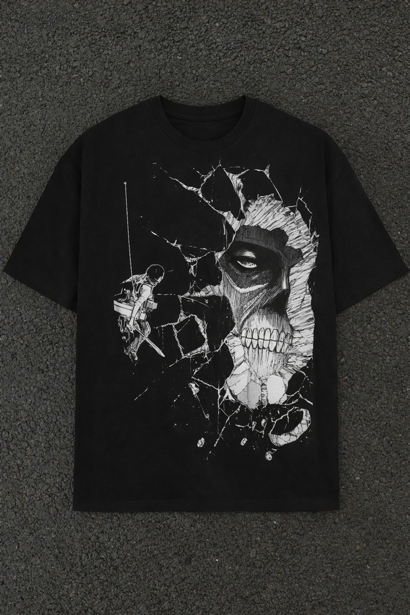 Men’s Colossal Titan Anime Oversized T-Shirt Heavyweight Cotton Black Adult