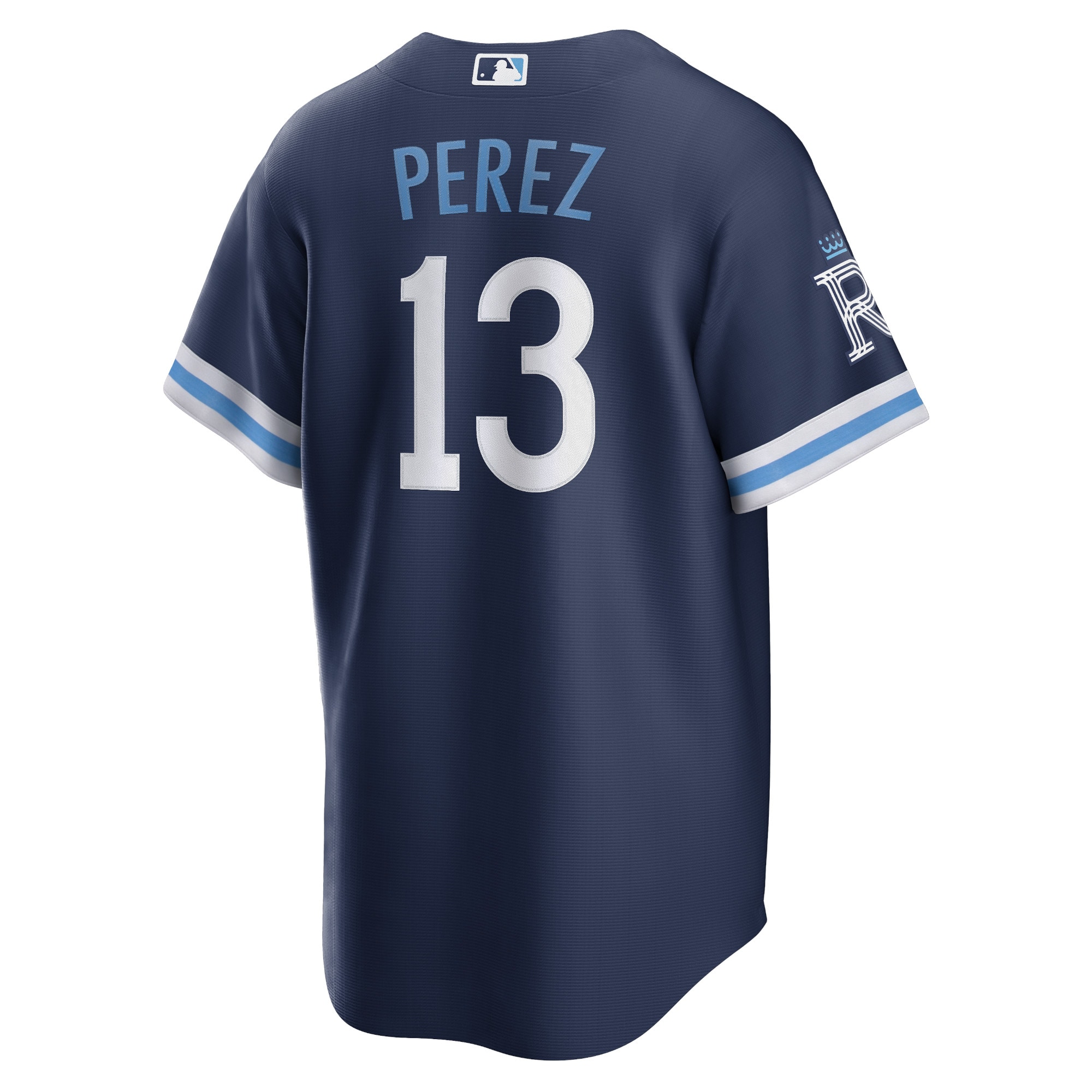 Men’s Kansas City Royals Salvador Perez Navy City Connect Player Baseball Jersey