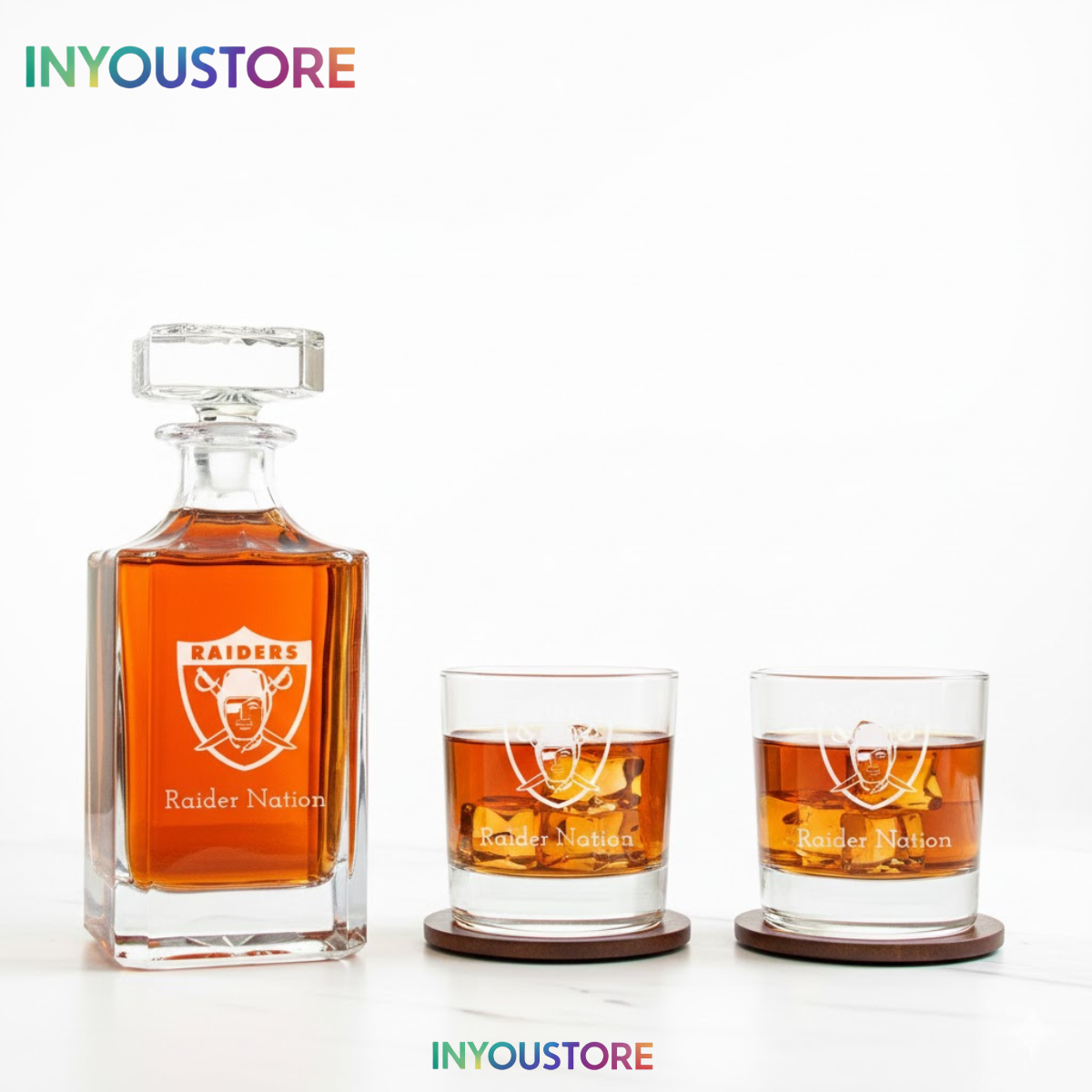 Showcase your team pride with this Men’s Las Vegas Raiders Custom Engraved Whiskey Decanter Set. Premium glassware featuring laser-etched logos.