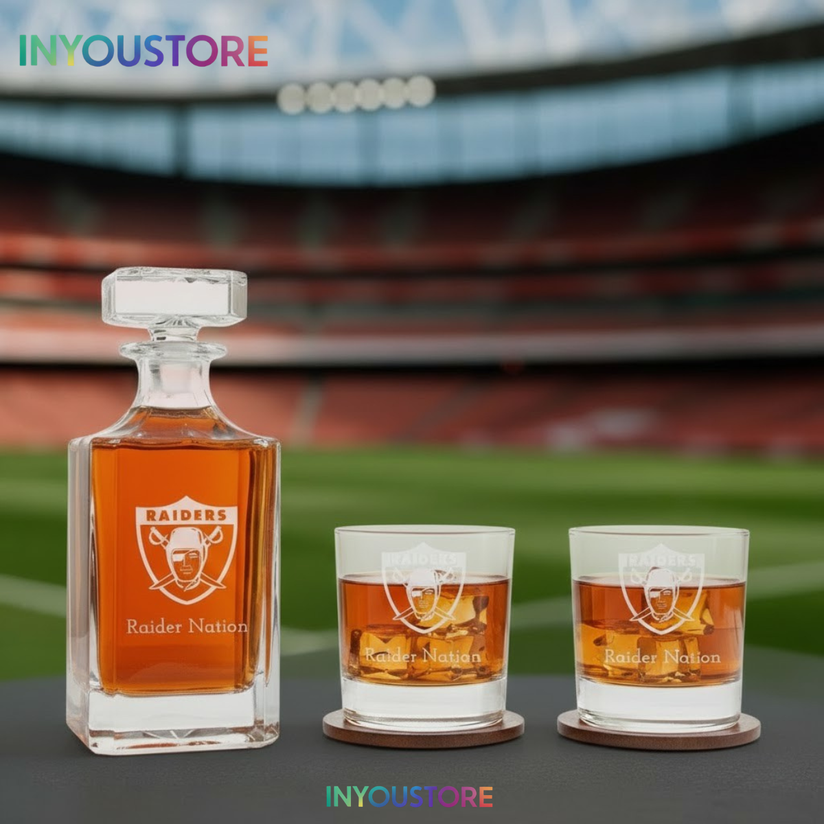 Feature: Custom engraved Las Vegas Raiders logo using high-definition laser technology—ensuring a permanent finish that won’t fade.