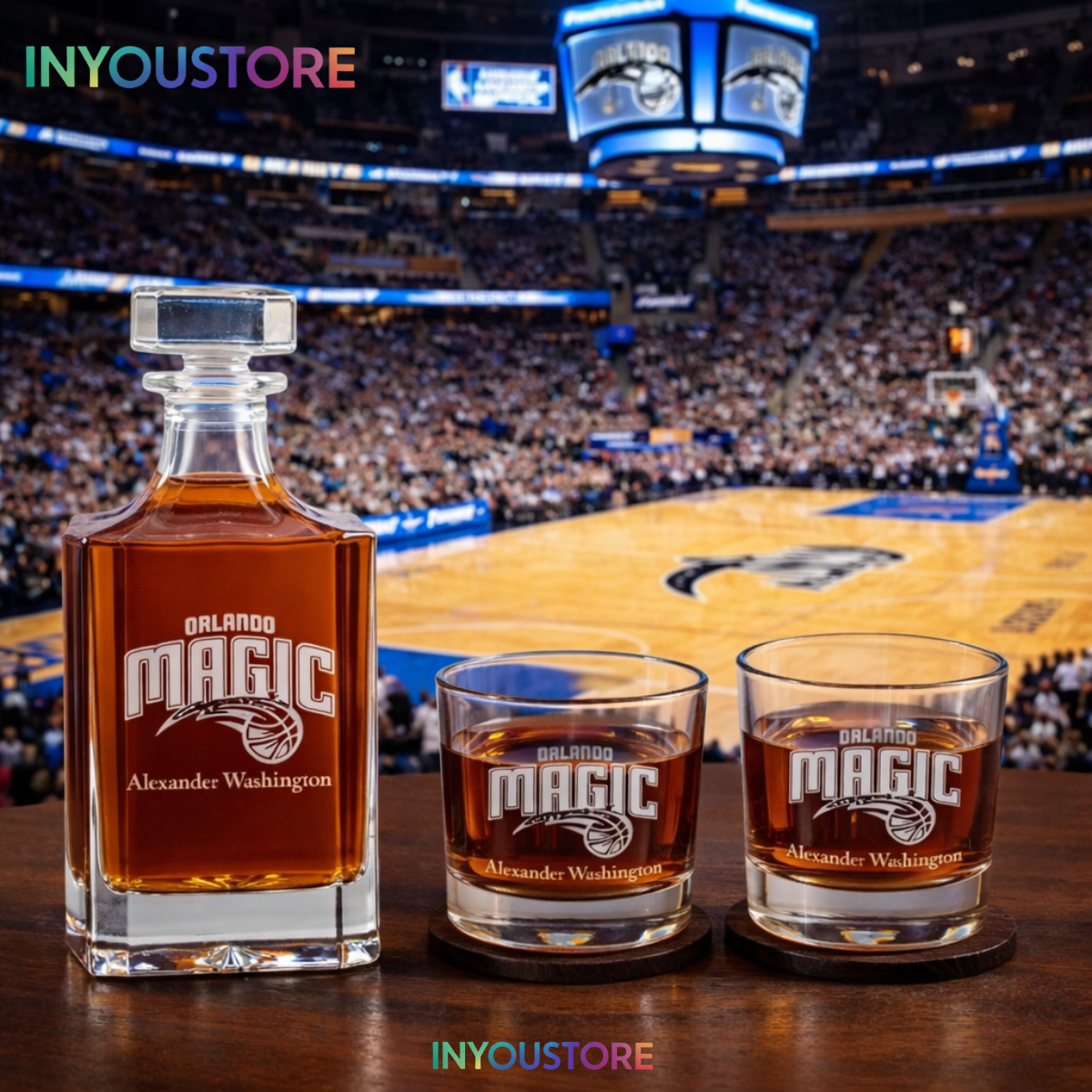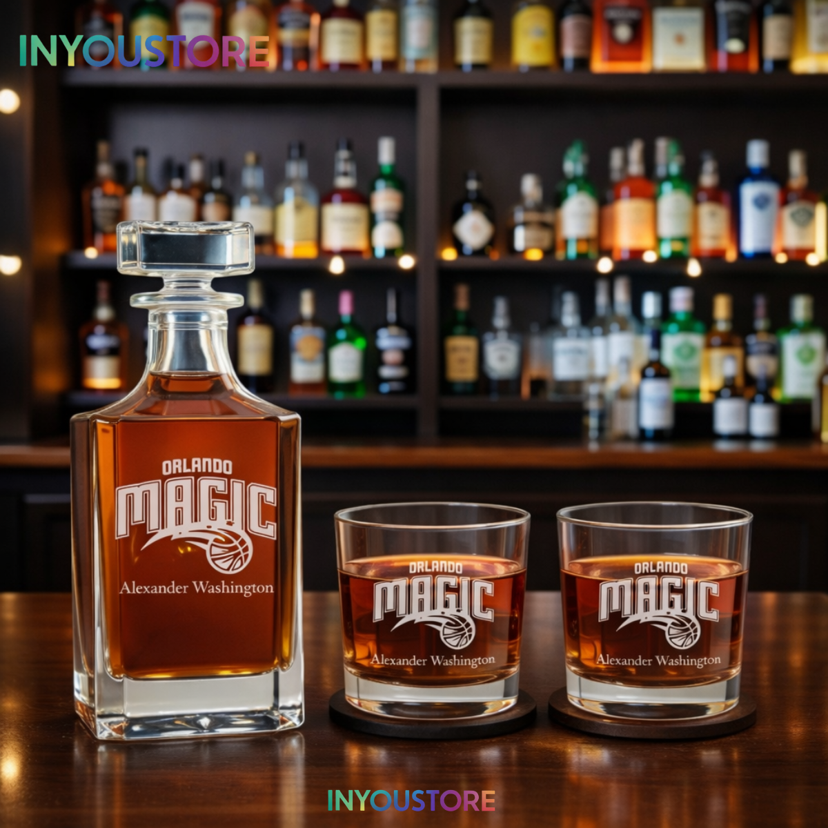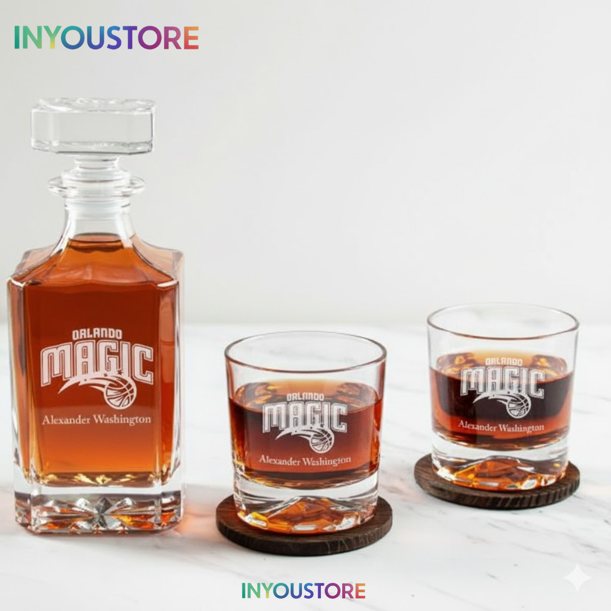 Elevate your bar with this Men’s Orlando Magic NBA Custom Engraved Whiskey Decanter Gift Set. Premium glassware with laser-etched logos.
