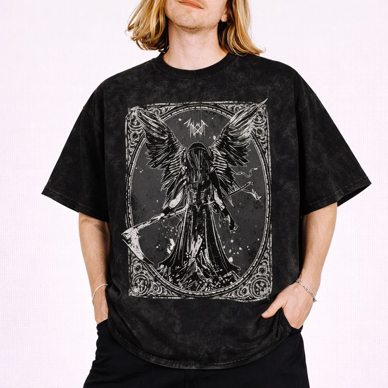 Sleep Token Reaper Angel Oversized T-Shirt – Premium Acid Wash Ritual Graphic Heavyweight Tee