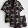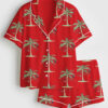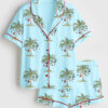 Men’s Tropical Christmas Aloha Holiday Beach Santa In July Hawaiian Print Short Sleeve Satin Pajamas Set
