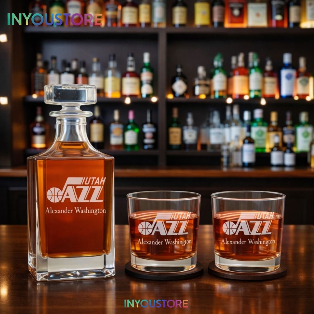 Elevate your game-day experience with this Men’s Utah Jazz Custom Engraved Whiskey Decanter Gift Set. Premium glassware with laser-etched NBA logos.
