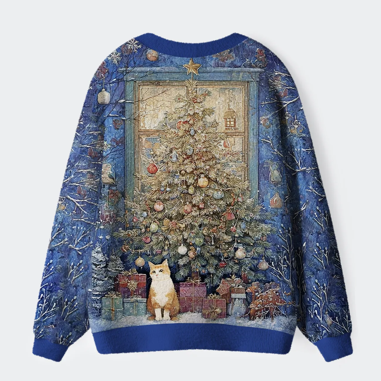 Subversive Chic: The Unforgettable “Meowy Christmas Wonderland Ugly Cardigan Sweater”