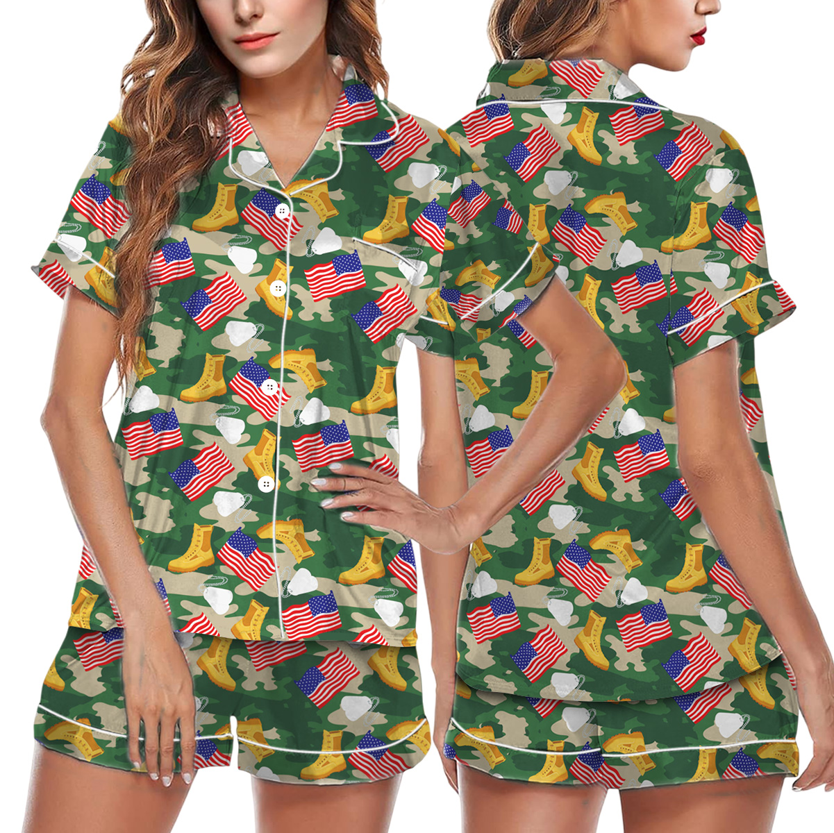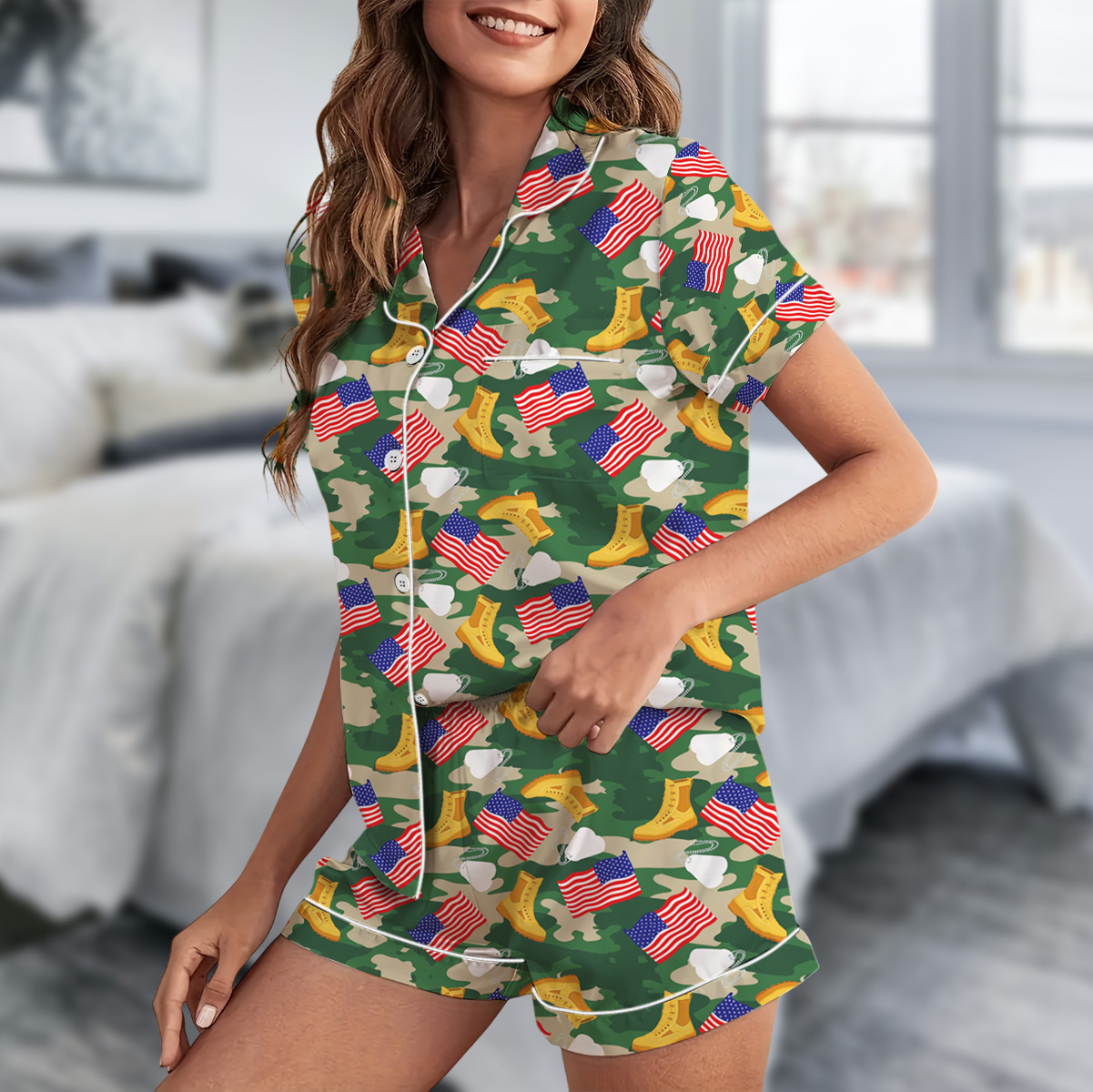 - Short-sleeve, button-front design with a turn-down collar, chest pocket, and contrast piping—classic and stylish for sleepwear, loungewear, or hosting guests.