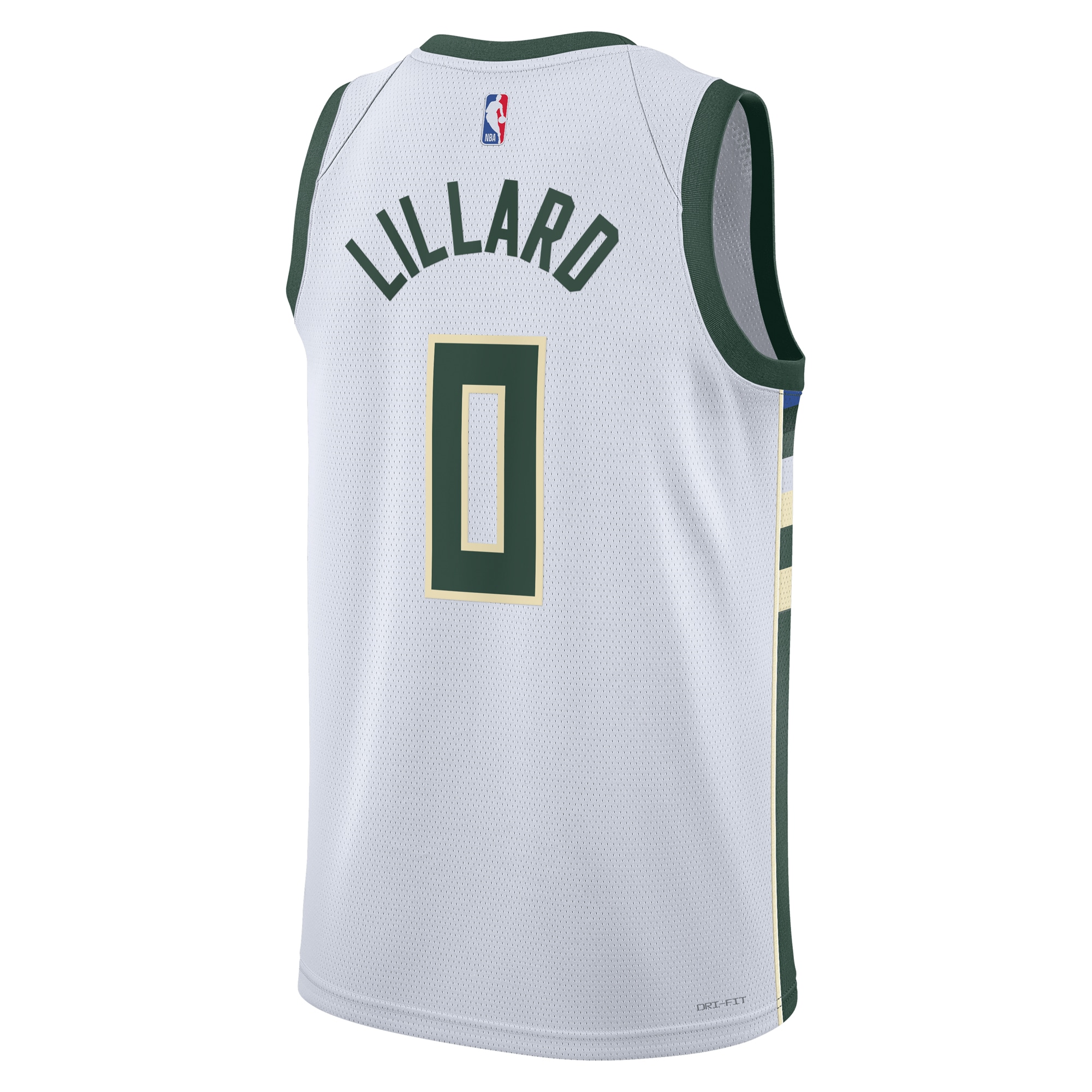 Milwaukee Bucks Association Edition Swingman Basketball Jersey – White – Damian Lillard – Unisex – JS189