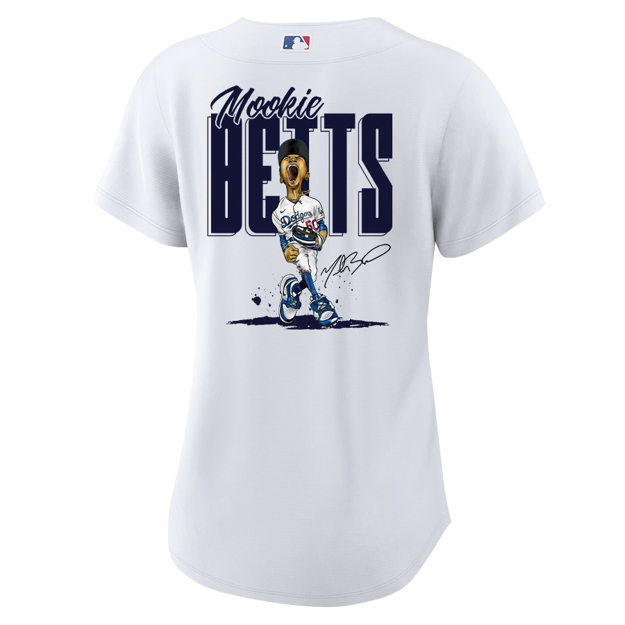 Mookie Betts 50 Los Angeles Dodgers Signed Cartoon 2023 Home Player Women Baseball Jersey – White