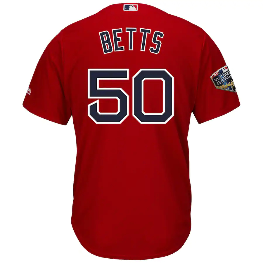 Mookie Betts Boston Red Sox Majestic 2018 World Series Cool Base Player Baseball Jersey – Scarlet