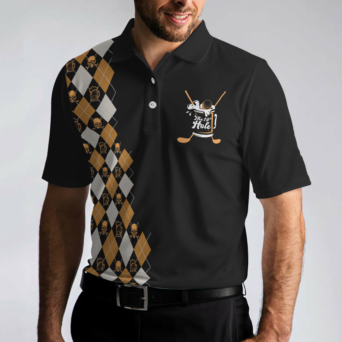 No Shanks Just Dranks The 19th Hole Polo Shirt, Argyle Pattern Beer Polo Shirt, Golf Shirt For Beer Lovers