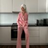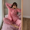 - Short-sleeve, button-front design with a turn-down collar, chest pocket, and contrast piping—classic and stylish for sleepwear, loungewear, or hosting guests.