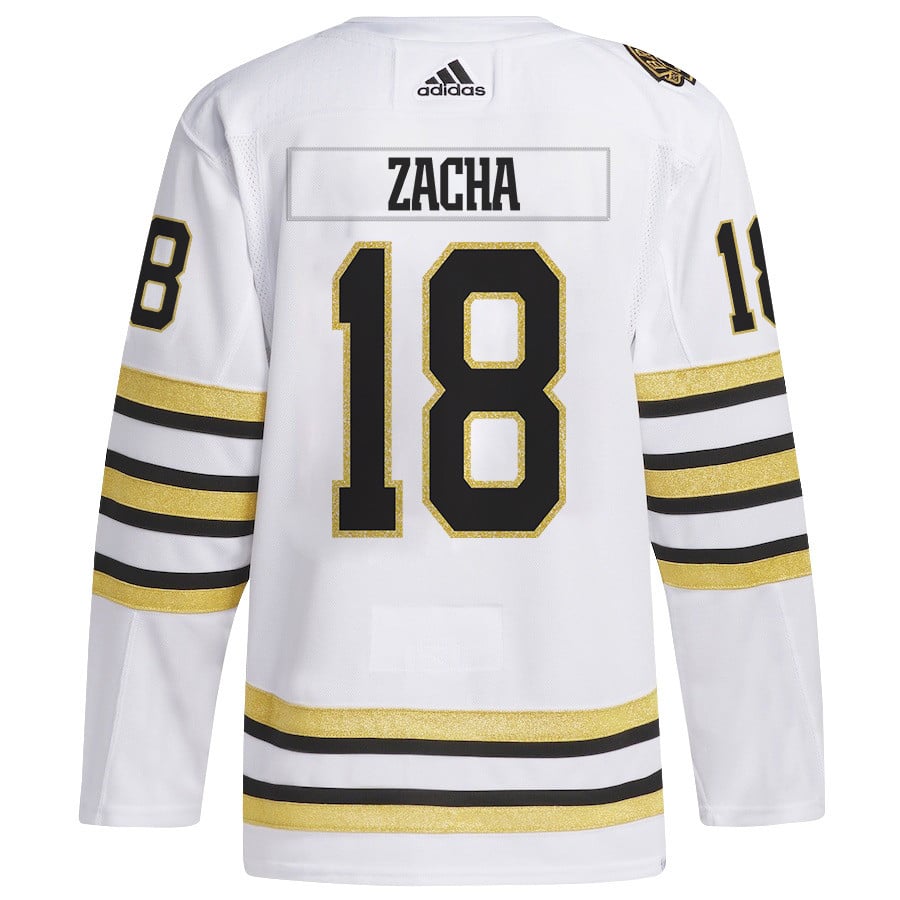 Pavel Zacha 18 Boston Bruins 2024 NHL Playoffs Patch Away Hockey Jersey – Men, White – JS834