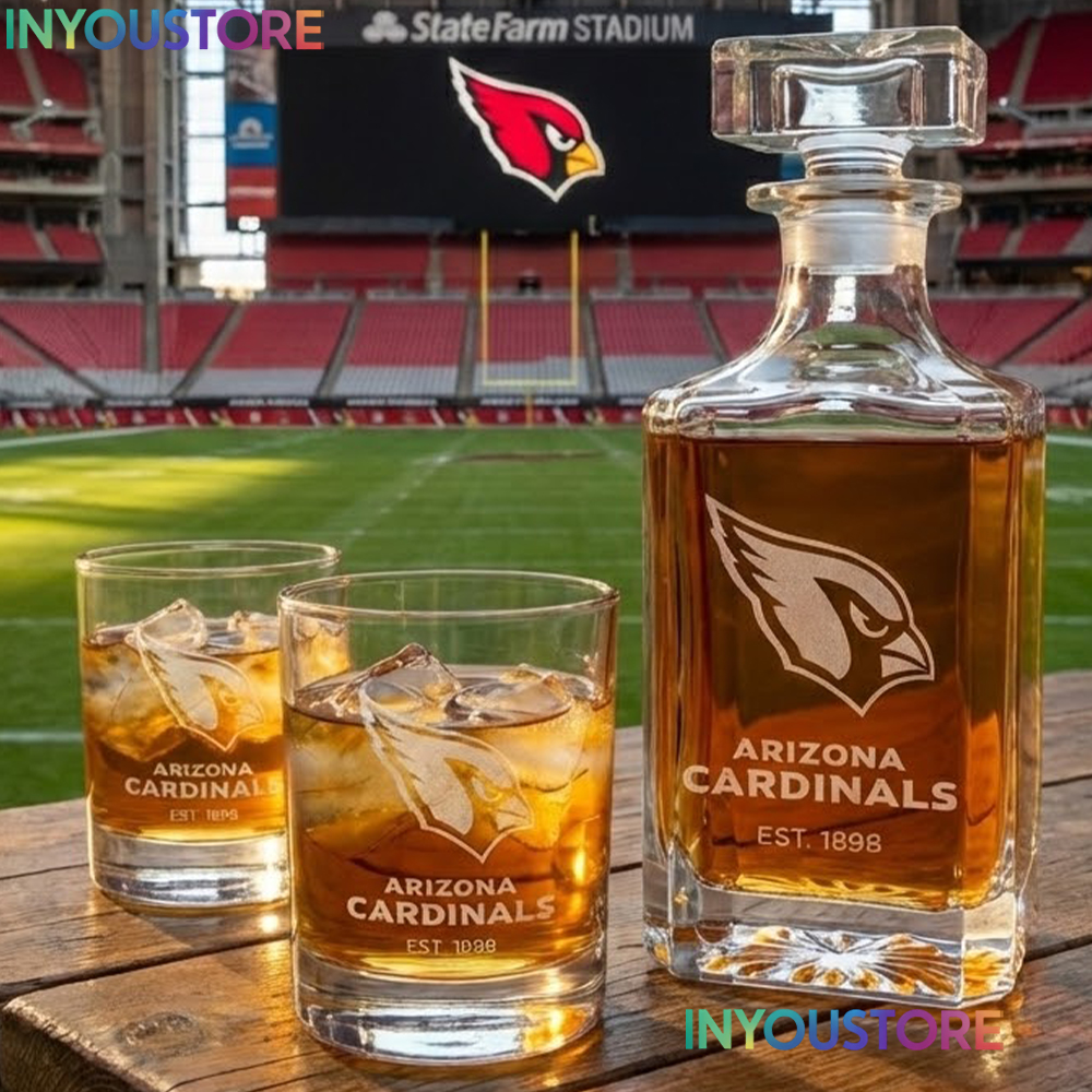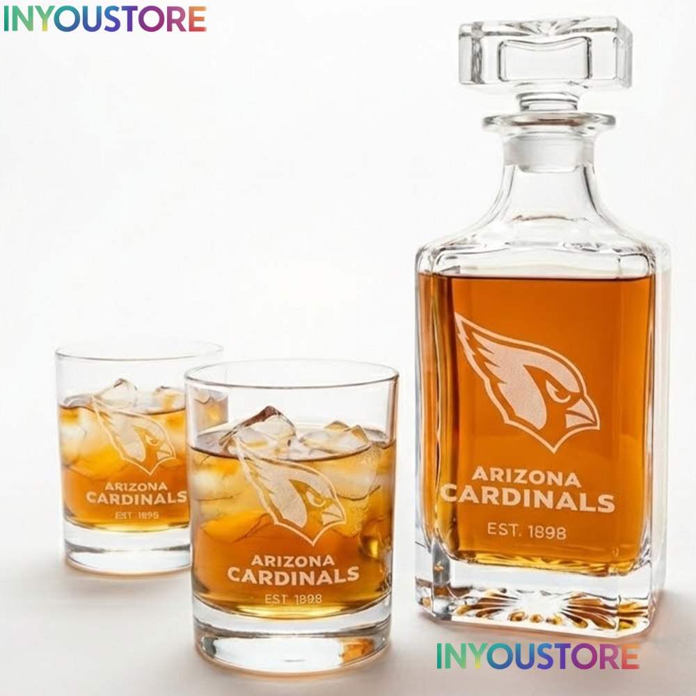 Product Description: Ignite your game day passion and protect the nest with the ultimate home bar centerpiece! Celebrate the oldest continuously run professional football franchise with this premium Arizona Cardinals Whiskey Decanter Set. This masterfully crafted set features a high-clarity square decanter and two matching rocks glasses, each precision-etched with the iconic aggressive Cardinal head logo and the “Est. 1898” founding year. Whether you’re toast to a big play at State Farm Stadium or looking for a sophisticated addition to your executive study, this set brings the intensity and tradition of Arizona football directly to your collection.