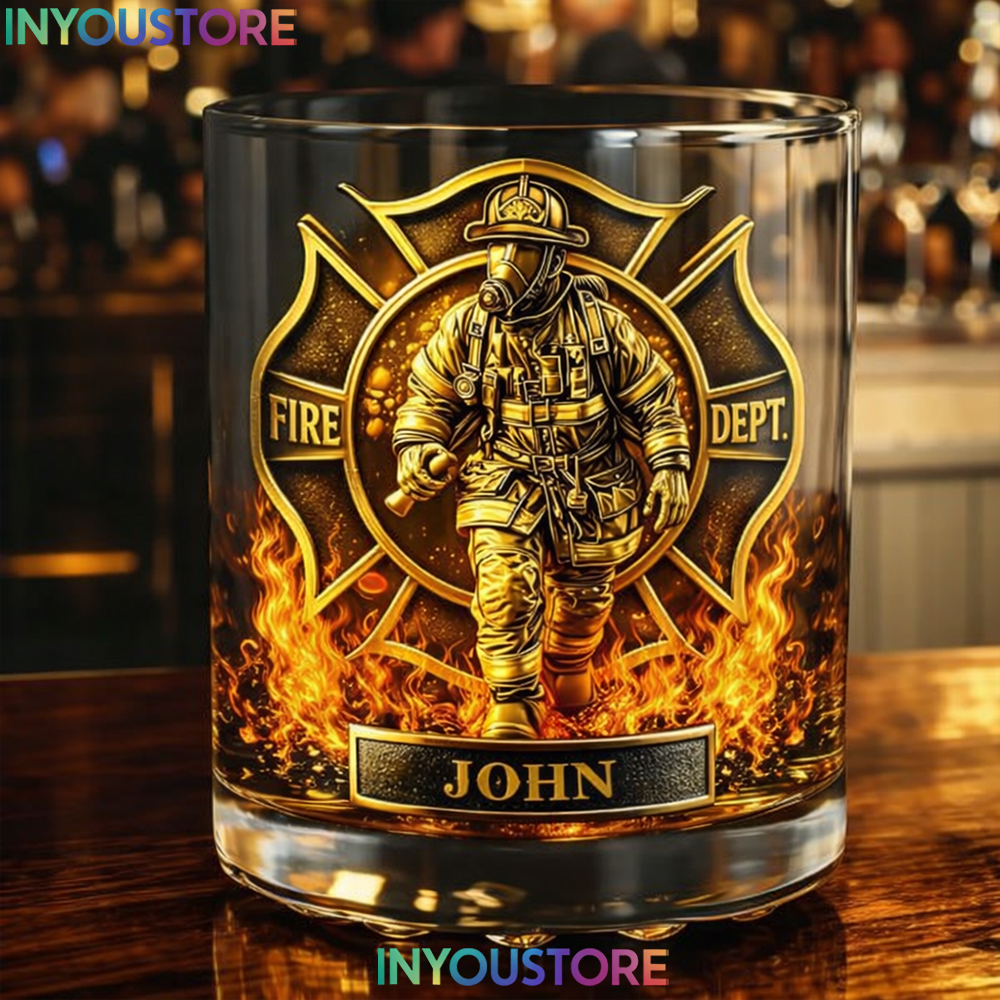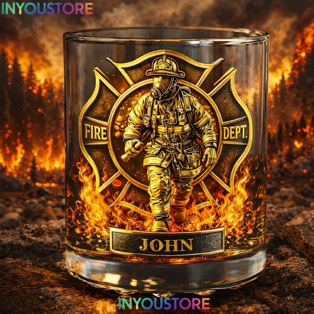 Personalized Firefighter Whiskey Glass – Custom Name Printed Design