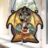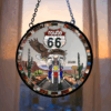 Personalized Gifts For Biker Suncatcher, Motorcycle Skull Riding On Highway Stained Glass 04QHPU280824