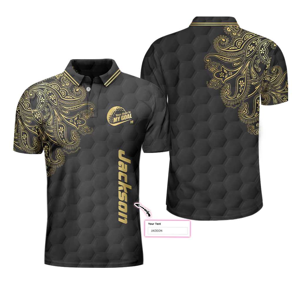 Be the first to review “Personalized Golden Your Hole Is My Goal Custom Polo Shirt, White And Purple Golf Shirt For Men”