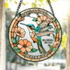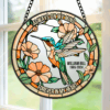 Discover unique, hand-crafted stained glass, wonderful decoration to always remember your lost loved one, these personalized stained glass artworks capture your loved likeness in vibrant colors and intricate designs. Hang this humming bird and flower suncatcher, as if your loved one has come to visit and is always with you.