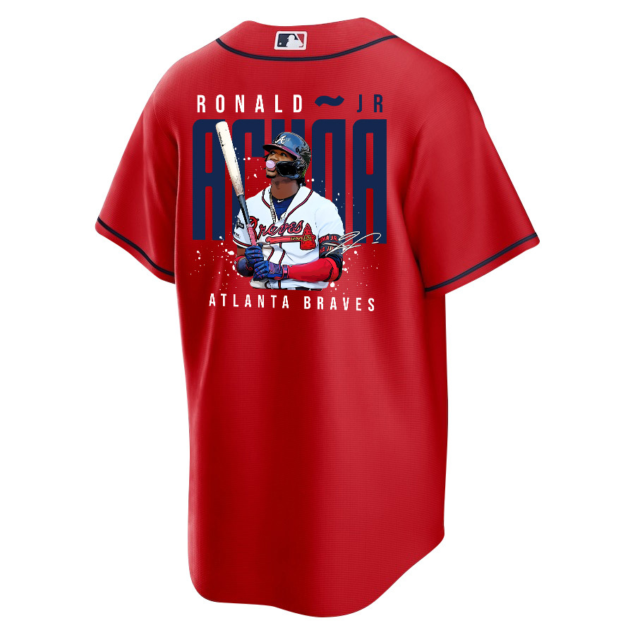 Ronald Acuña Jr. 13 Atlanta Braves Signed Gum 2023 Alternate Player Men Baseball Jersey – Red – JS657