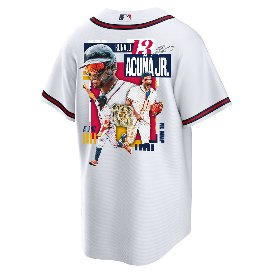 Ronald Acuña Jr. 13 Atlanta Braves Signed MVP 2023 Home Player Men Baseball Jersey – White Red – JS911