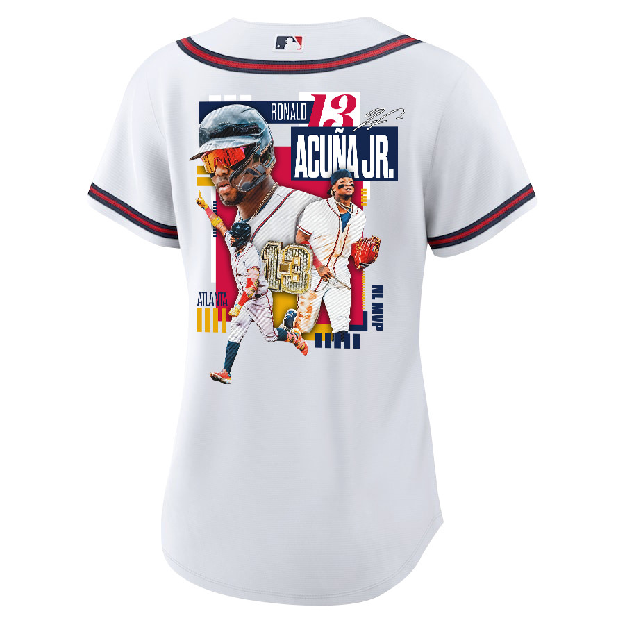 Ronald Acuña Jr. 13 Atlanta Braves Signed MVP 2023 Home Player Women Baseball Jersey – White Red – JS936