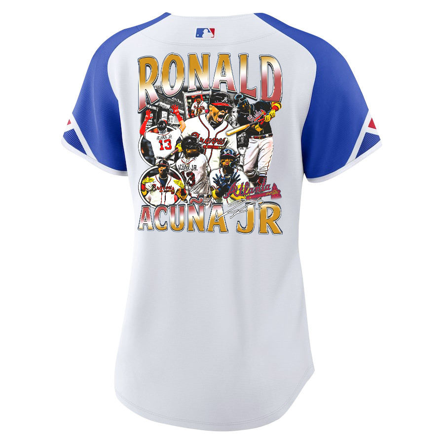 Ronald Acuña Jr. 13 Atlanta Braves Signed Posture 2023 City Connect Player Women Baseball Jersey – White Blue – JS818