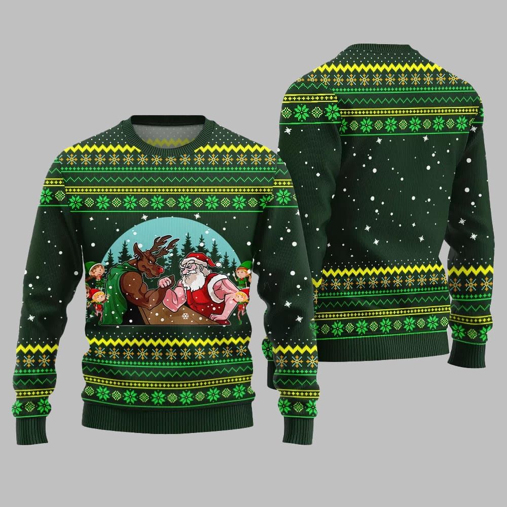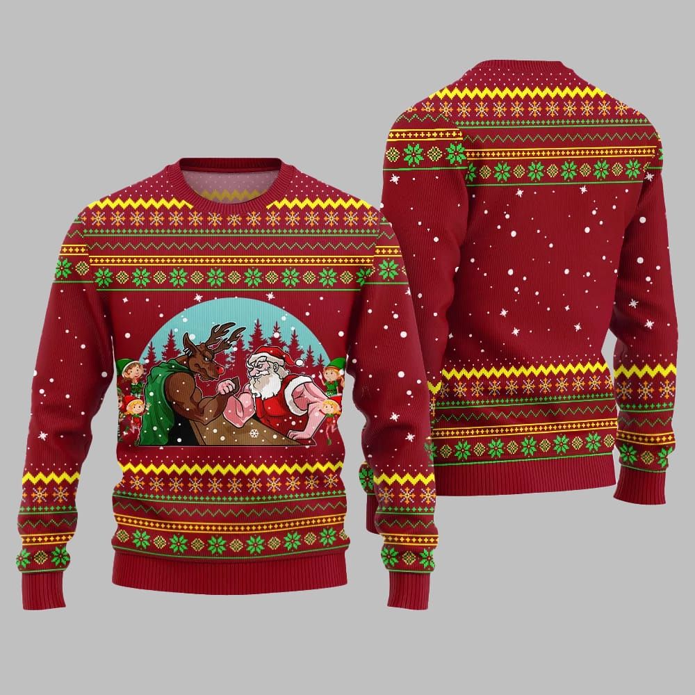 Santa Vs Reindeer Arm Wrestling Ugly Sweater Christmas 2025 – A Hilariously Festive Addition