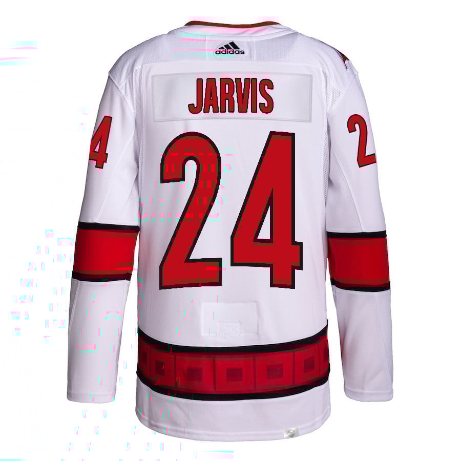 Seth Jarvis 24 Carolina Hurricanes 2024 NHL Playoffs Patch Away Hockey Jersey – Men, White – JS332